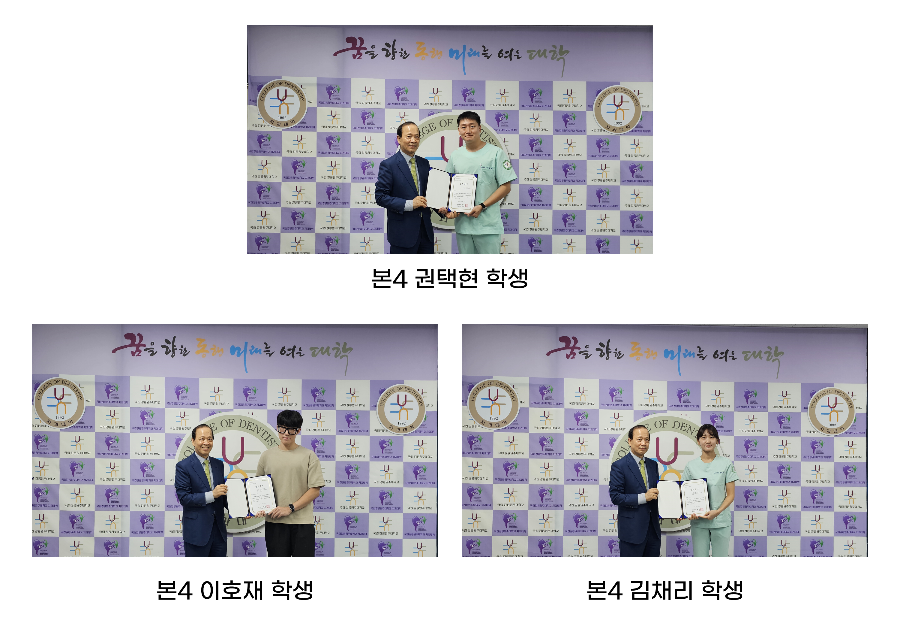 2025학년도 국립강릉원주대학교 덴티움 장학금 수상자는 다음과 같다.