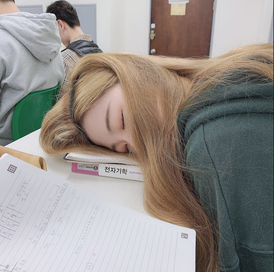 김영래교수님께 죄송하지만..ㅎ 아마 2019년도에 전자기학(김영래교수님 첫 영어수업)시간 시작 전에 강의실에 들어와서 미리 조금 자고있던 제 모습을 친구가 찍어준 사진입니다. 대신 수업시간은 정말 잘 들었습니다. 이후에는 코로나때문에 강의실에서 수업듣는 것도 힘들었는데 강의실에서 수업들었던 때가 조금 그립기도 해서 위 사진을 첨부합니다.