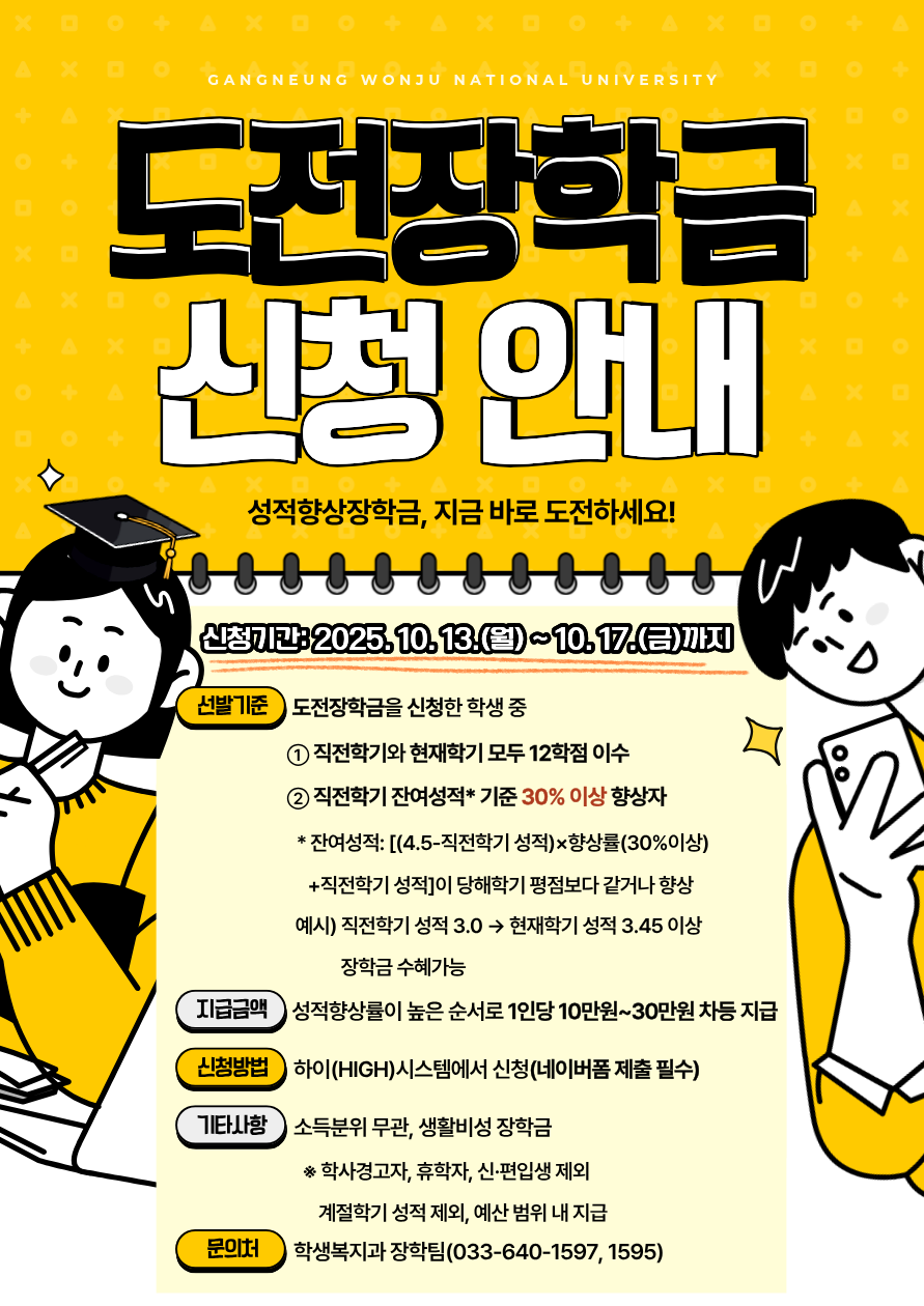 2025학년도 2학기 도전장학금(성적향상장학금) 신청 안내 및 홍보 협조 요청