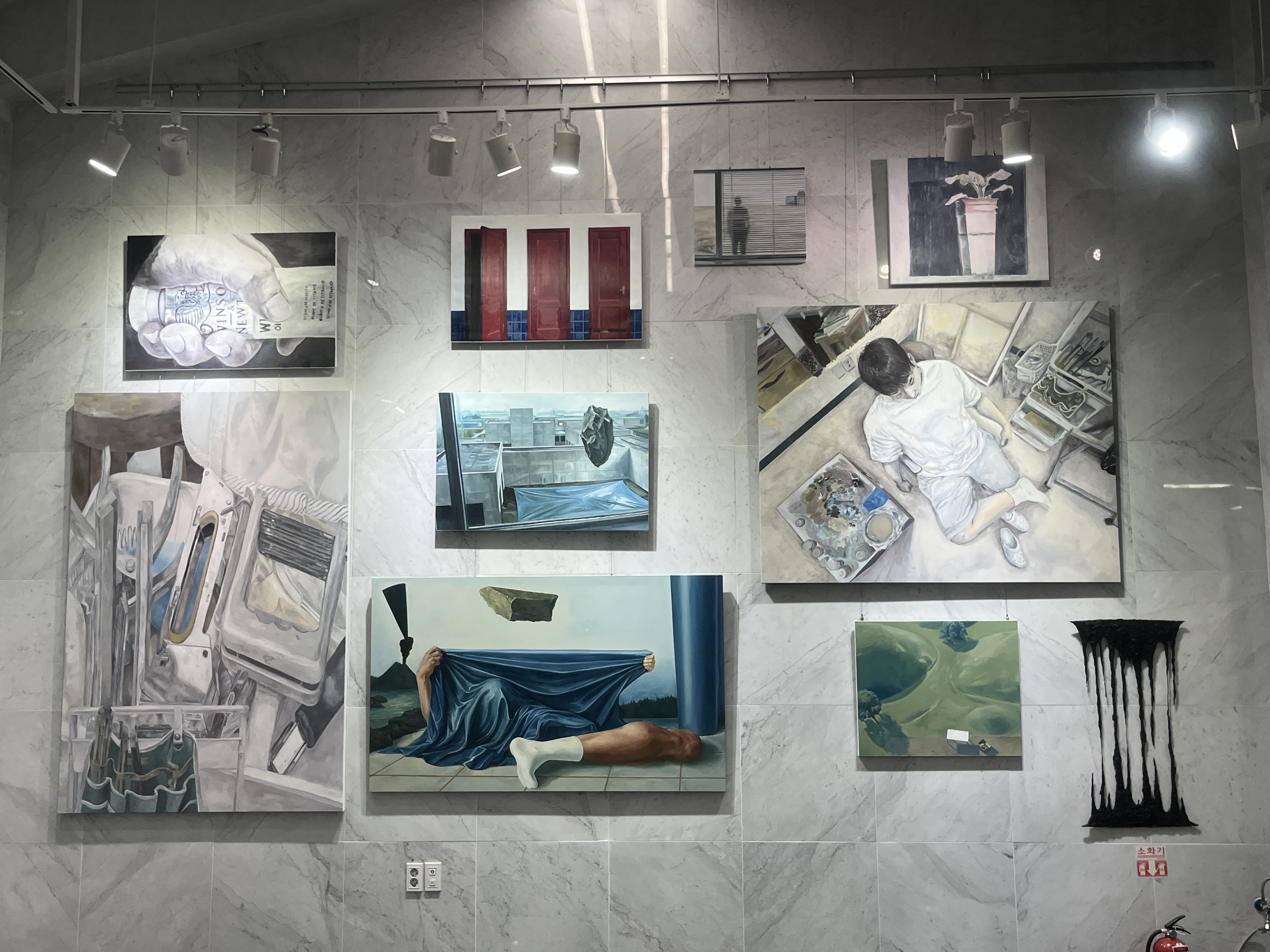 종이 위의 이미지, 캔버스에 구성된 화면, 공간을 점유하는 입체적 구조물은 하나의 기준으로 묶이지 않은 채, 배치와 동선, 관람자의 위치에 따라 서로 다른 관계를 형성한다.