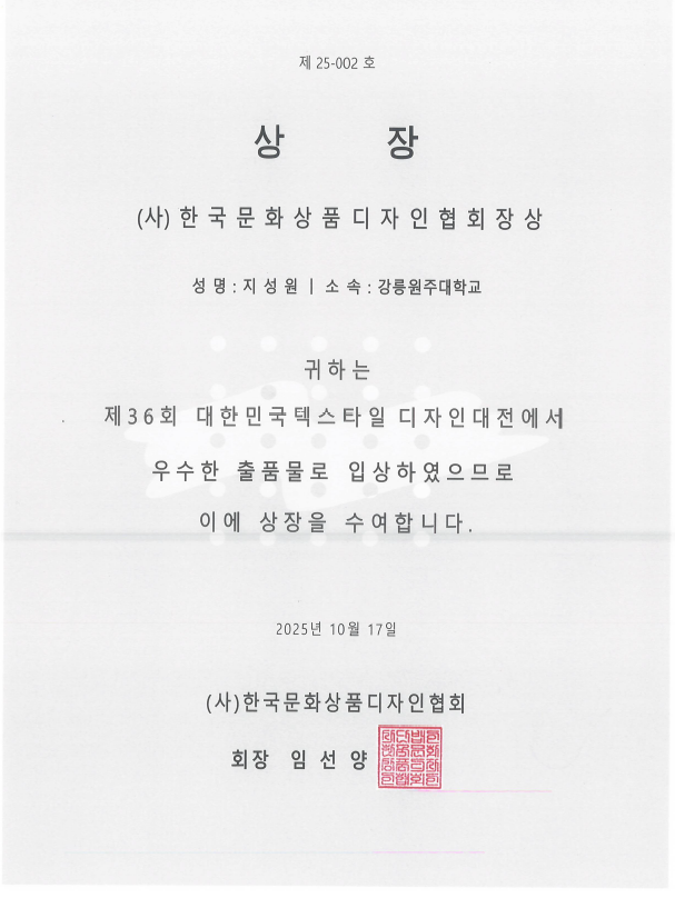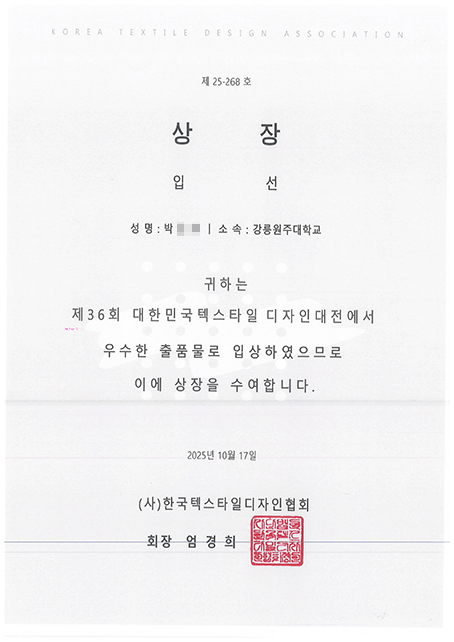 2025년도 섬유디자인 전공 제 36회 대한민국 텍스타일디자인 공모전 수상