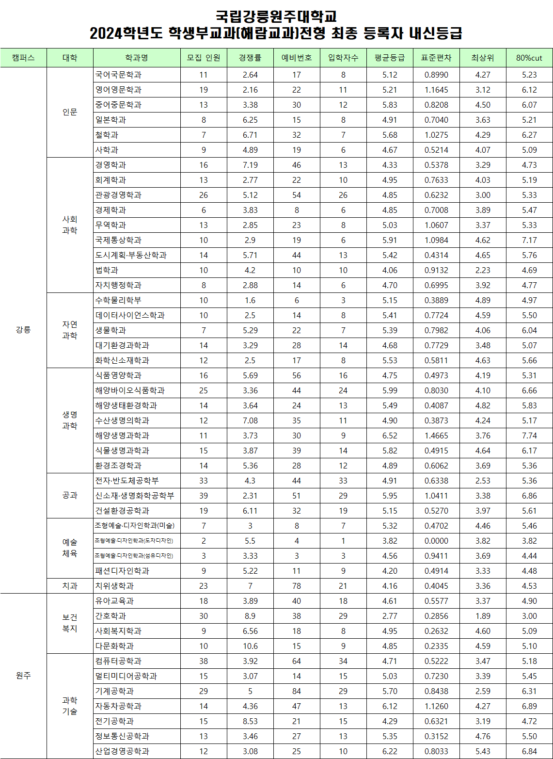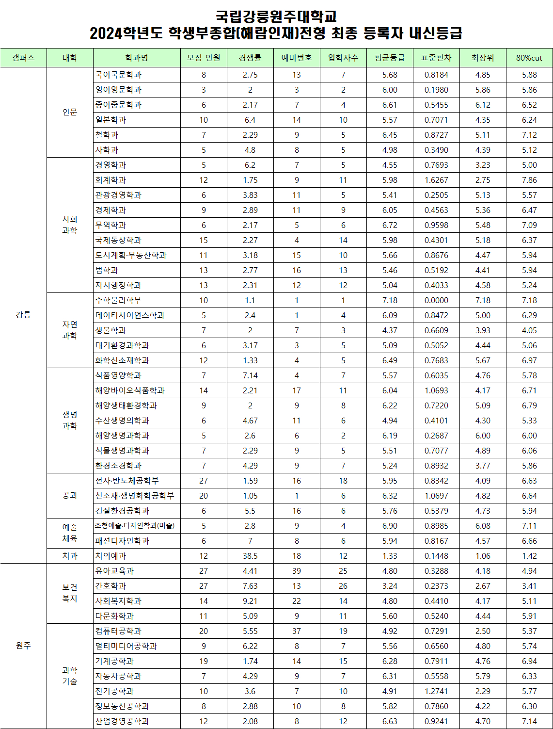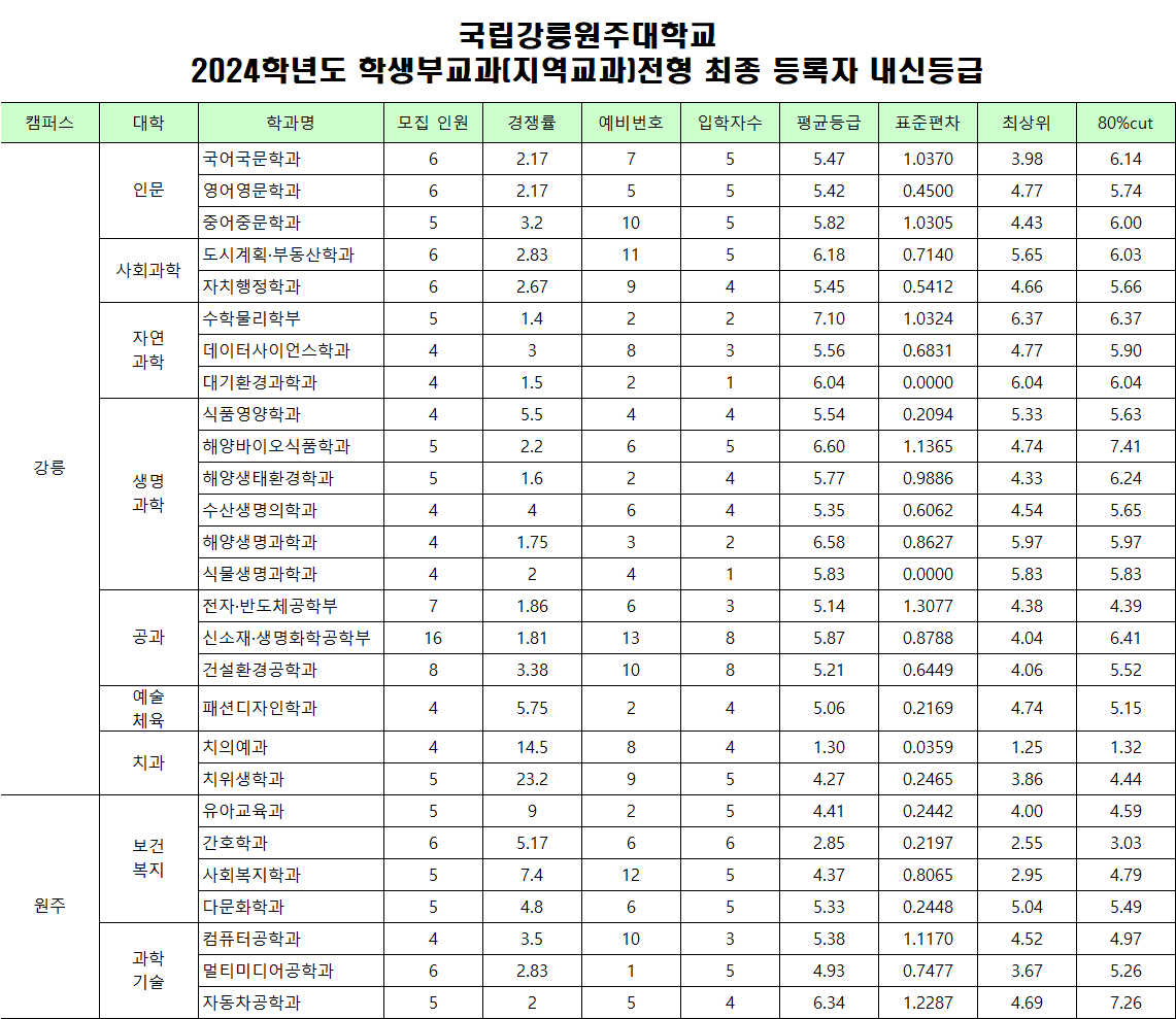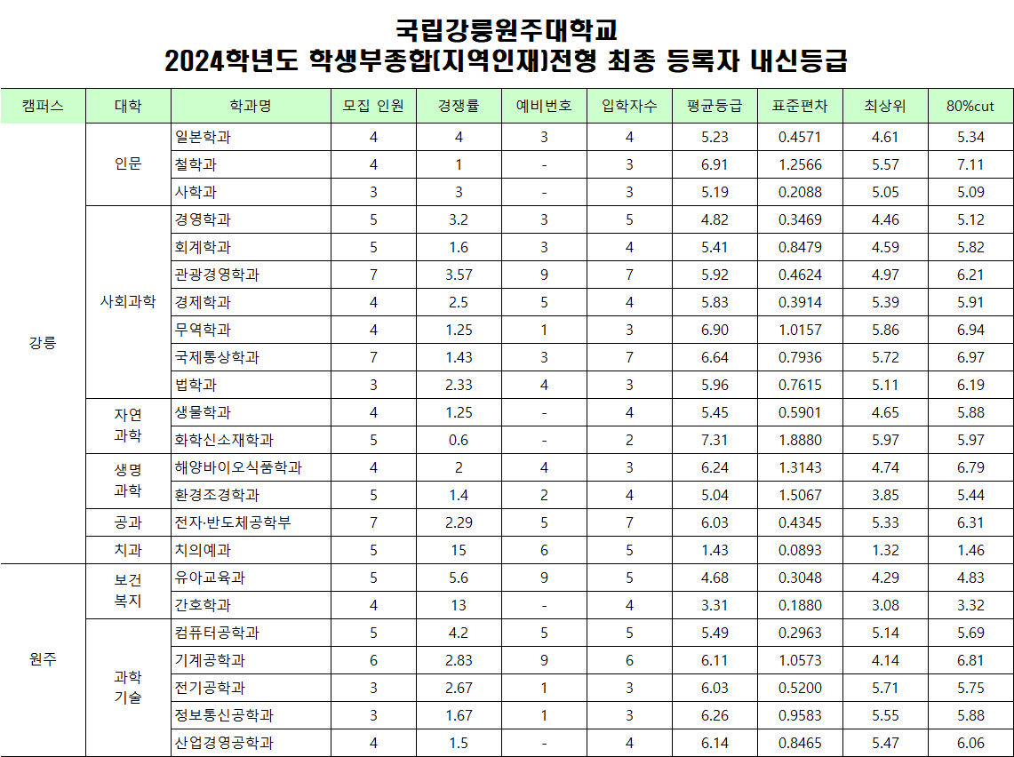 2024학년도 신입학 수시모집 경쟁률 및 성적자료(등급수정)