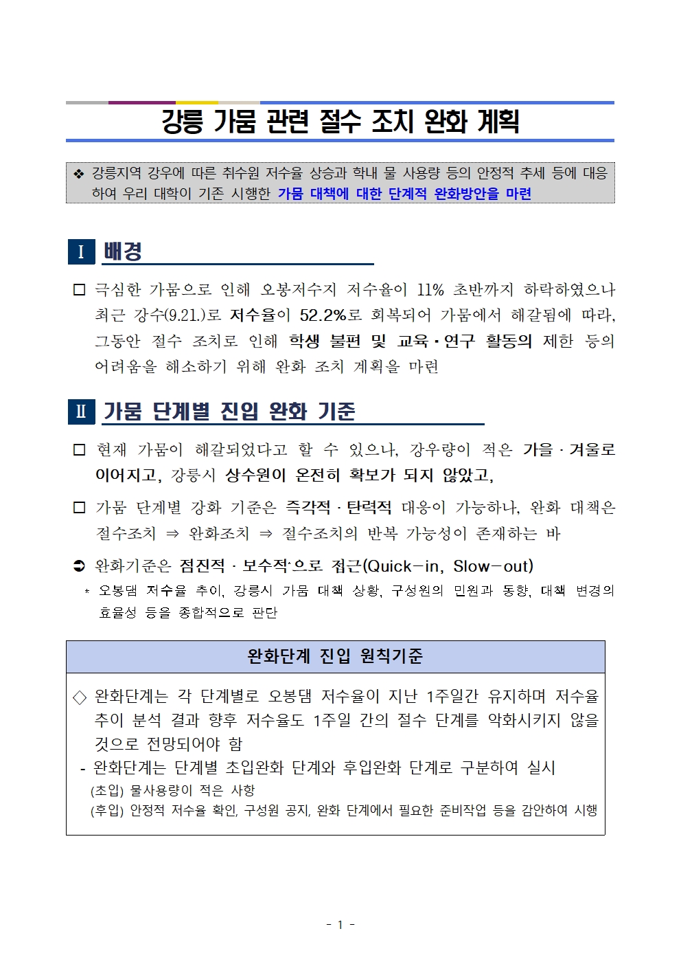 [기타안내] 강릉 가뭄 관련 절수 조치 완화 계획