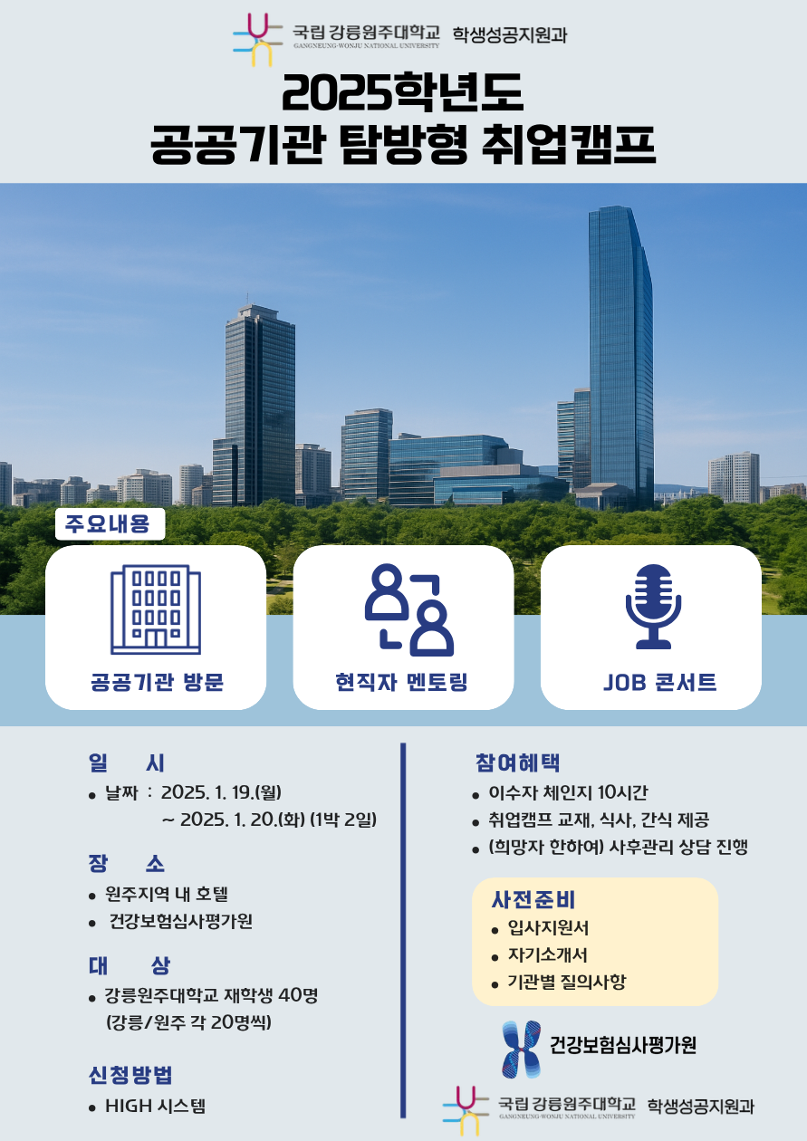 [학생성공지원과] 2025학년도 동계방학 중 공공기관 탐방형 취업캠프