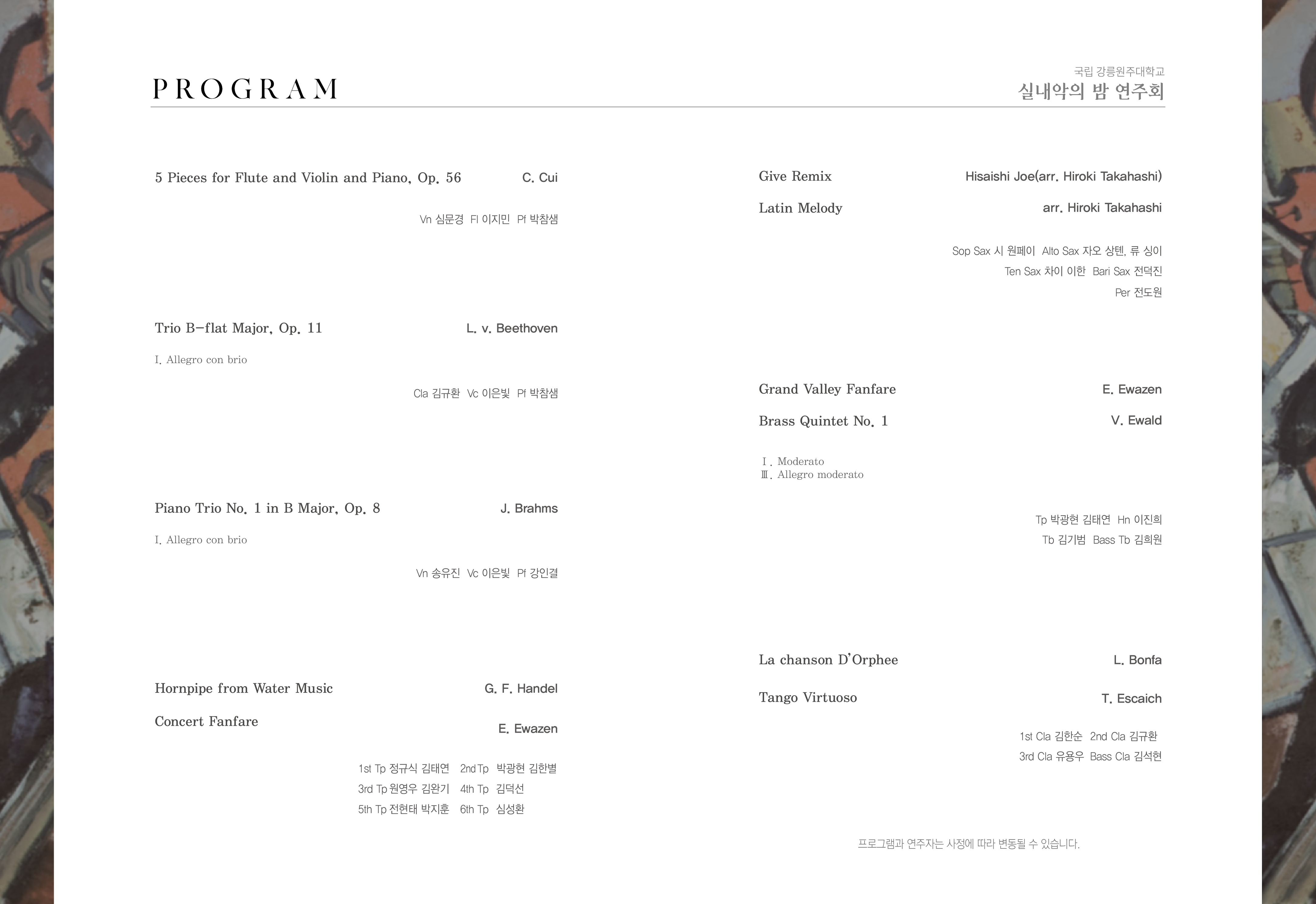 강릉원주대학교 음악학과 실내악의 밤 연주회
