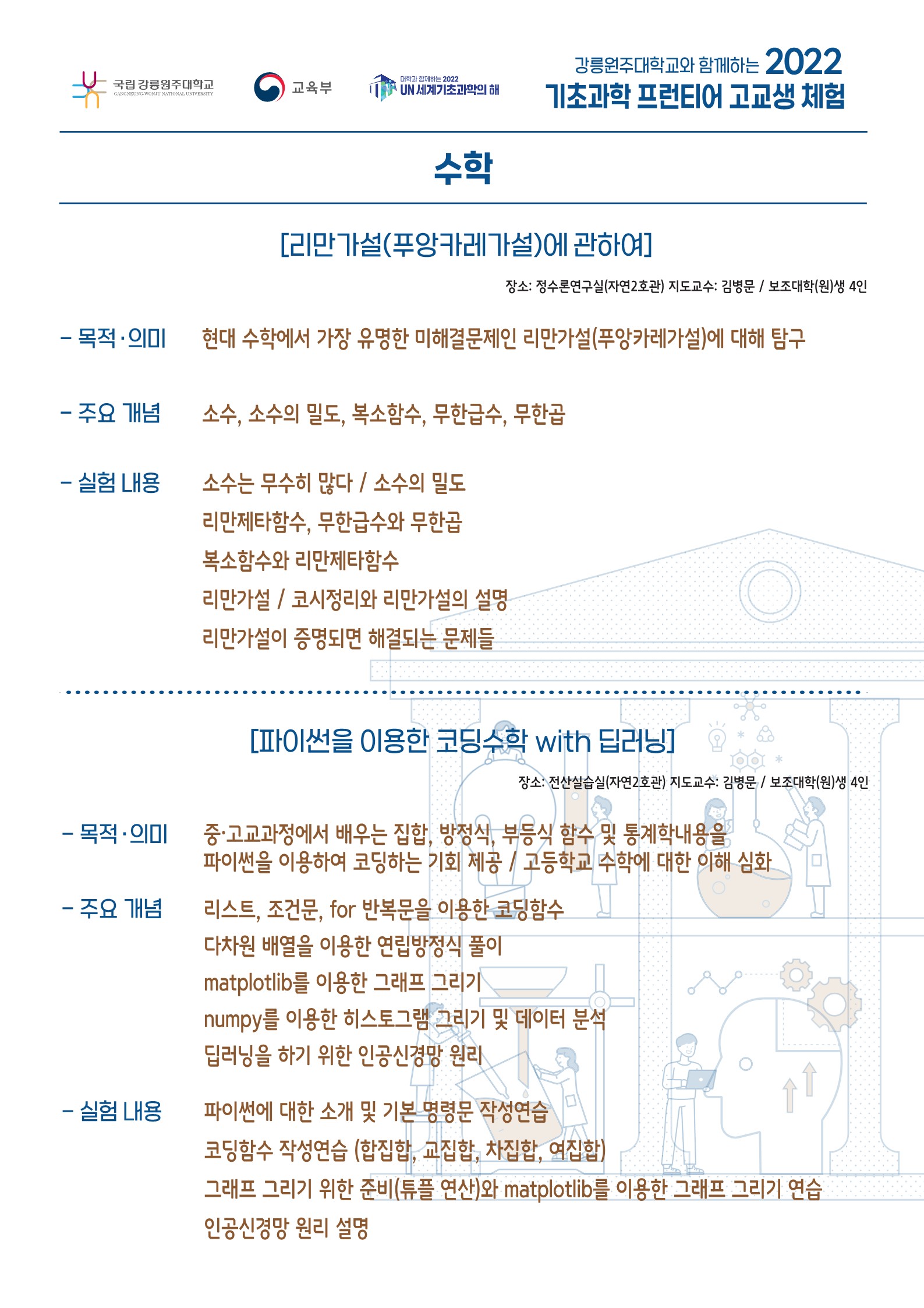 [강릉원주대학교와 함께하는 2022 기초과학 프런티어 고교생 체험 행사]