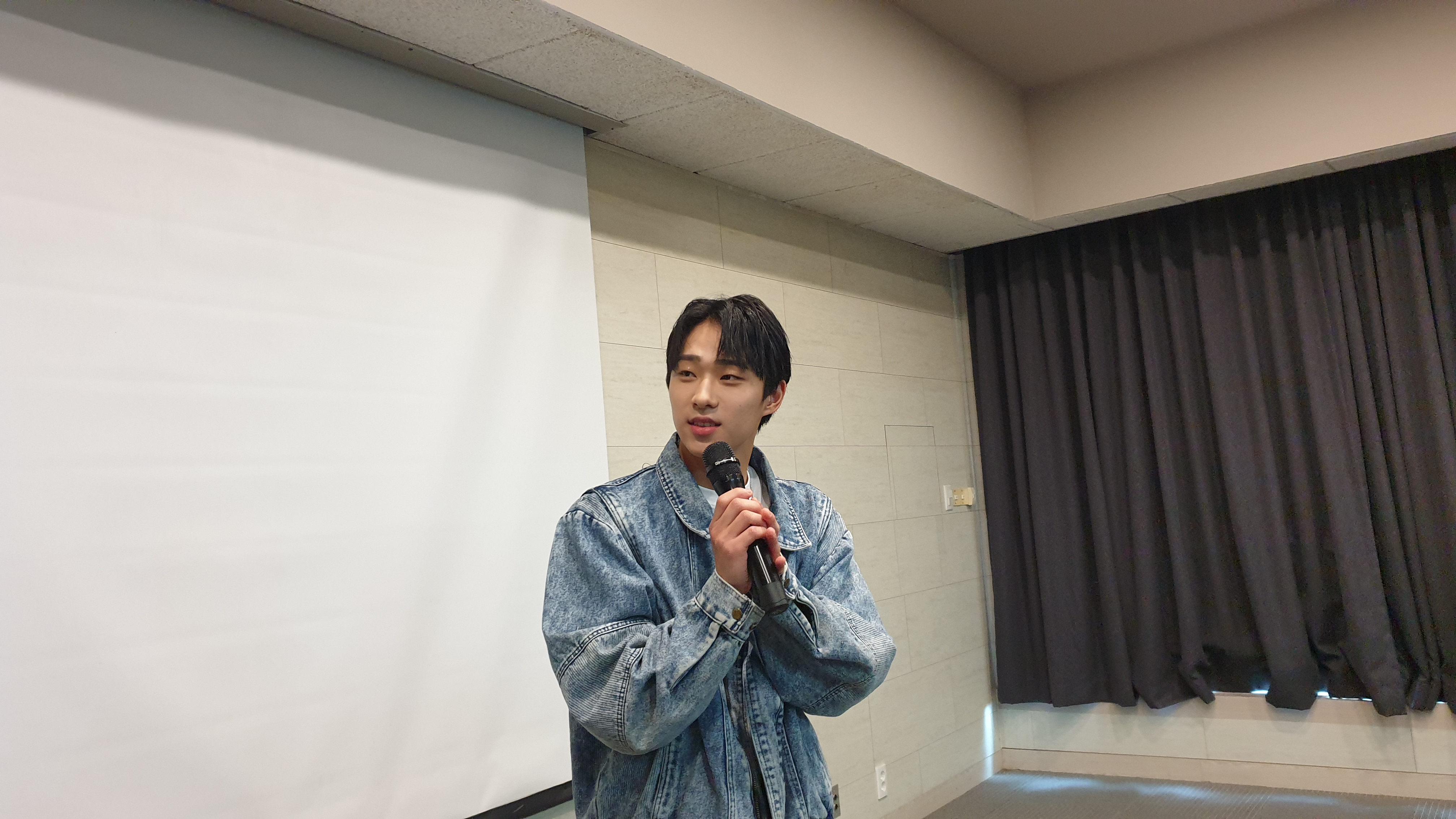 진행자와 가위바위보하는 모습인데