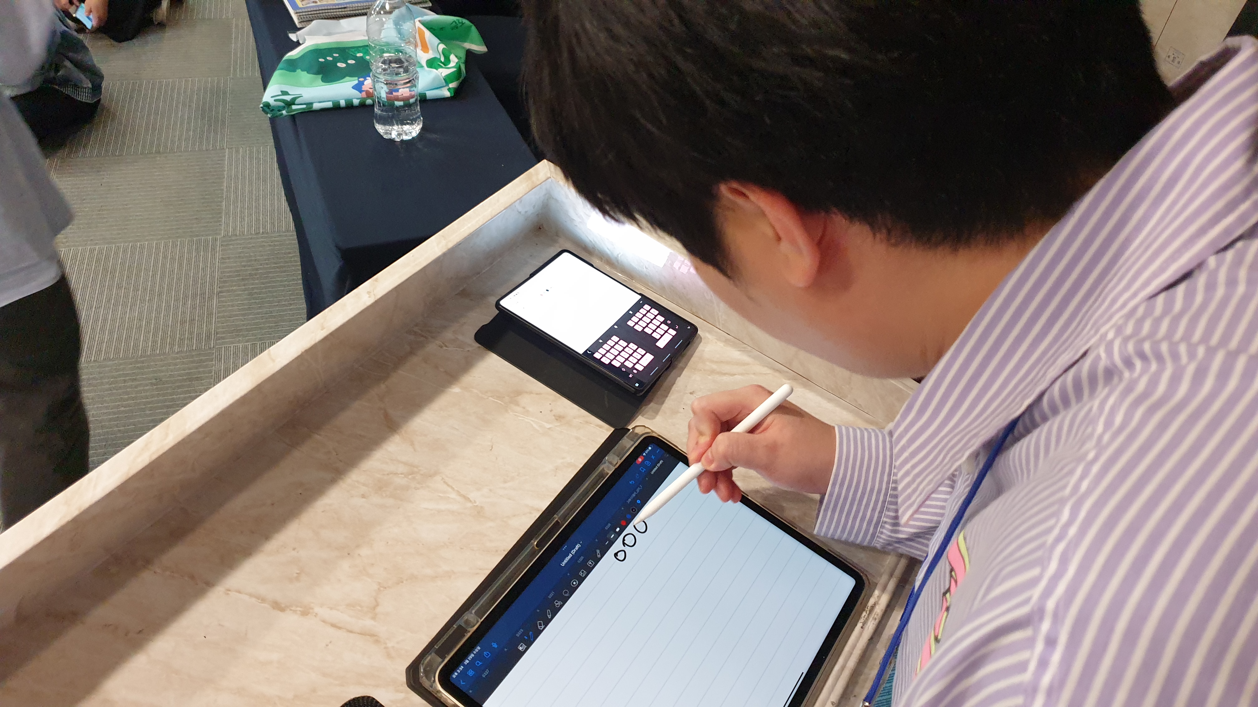 열심히 그림을 그리는 김동찬 조교선생님의 모습
