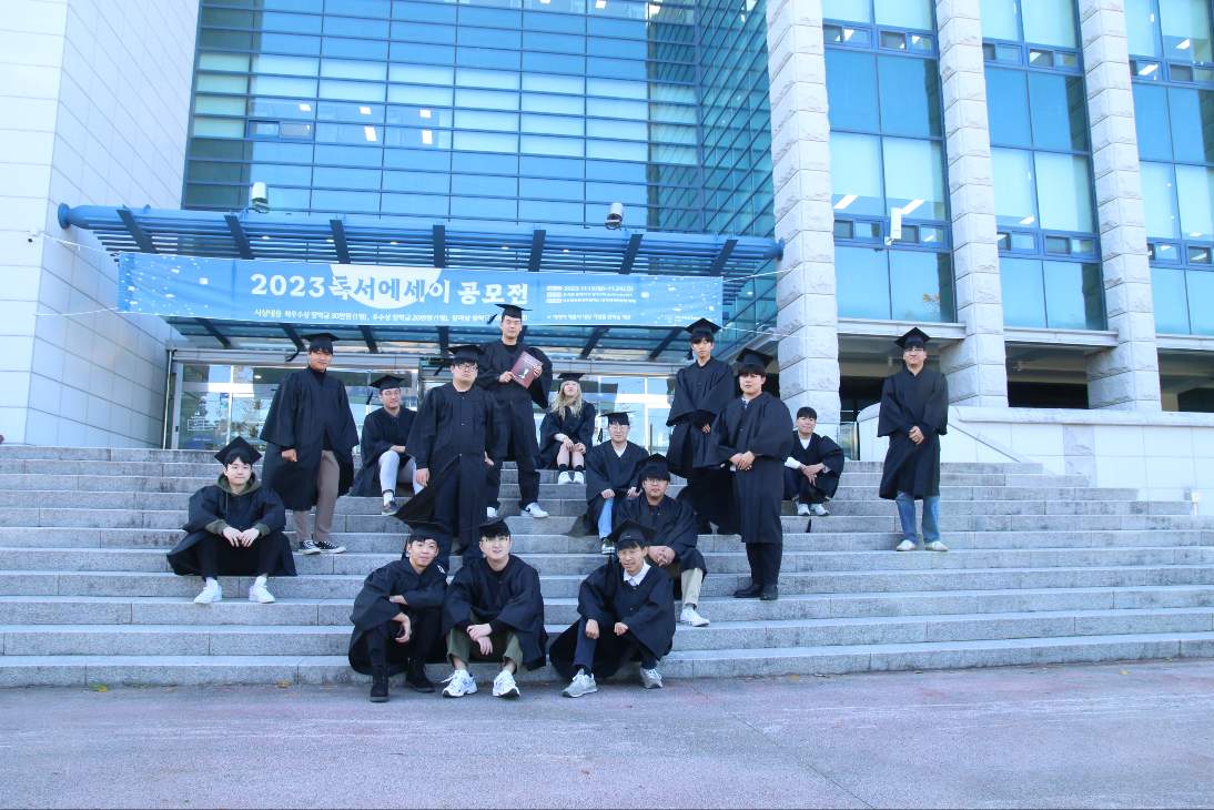 학교 도서관 앞에서도!