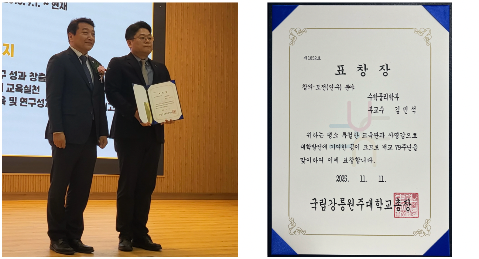 수학물리학부 물리·에너지전공 김민석 교수, '대학발전유공' 표창 (11월10일)