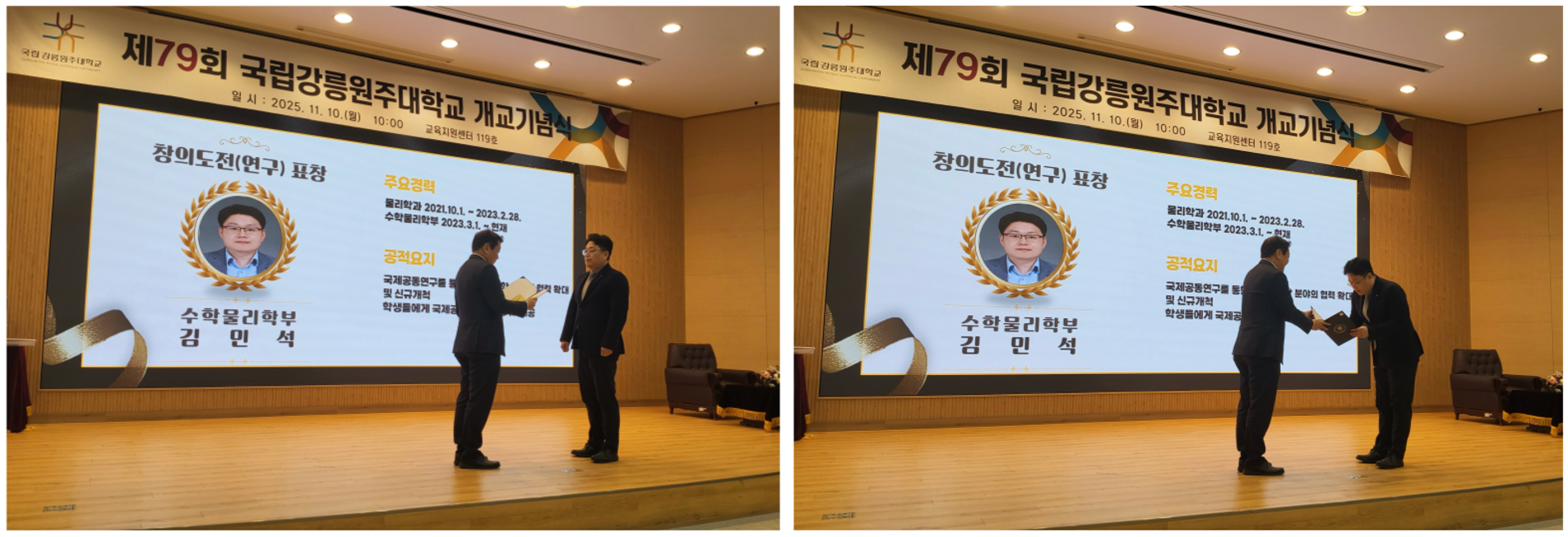 국립강릉원주대학교 개교 79주년 기념식(2025,11,10.)에서