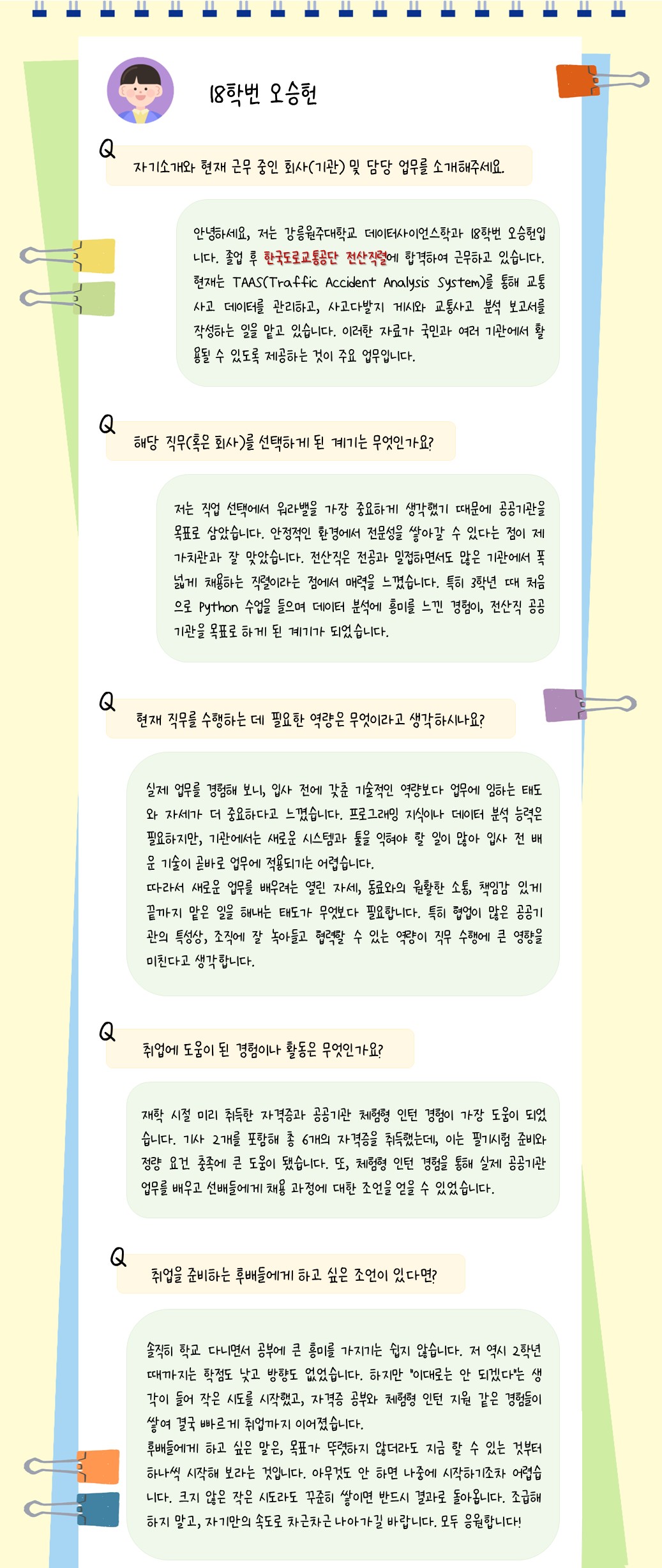 [선배들의 취업 스토리] 18학번 오승헌 졸업생 (한국도로교통공단 전산직)