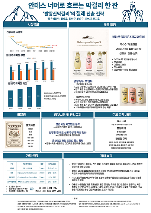 동상은 ‘유색유취’팀(정태호(20학번, 팀장), 신승규(20학번), 김민준(22학번), 이연재(25학번), 허지후(25학번), 지도교수 김동윤)이 ‘안데스 너머로 흐르는 막걸리 한잔: 발왕산 막걸리의 칠레 진출 보고서’를 주제로 수상했다.