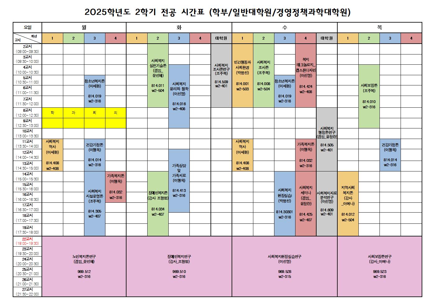 2025학년도 2학기 전공시간표 안내