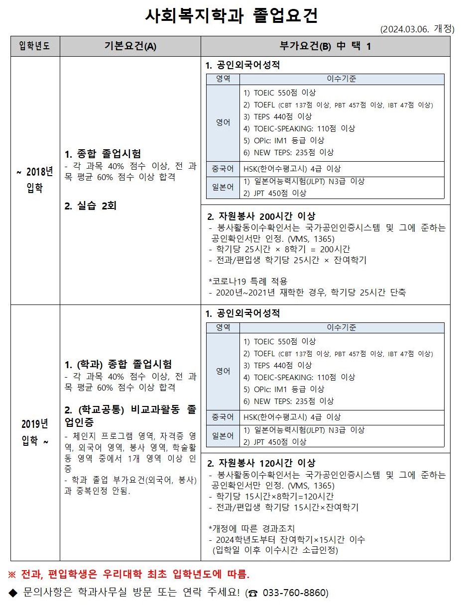 [중요] 사회복지학과 졸업요건 개편사항 안내(2024.03.06.개정)