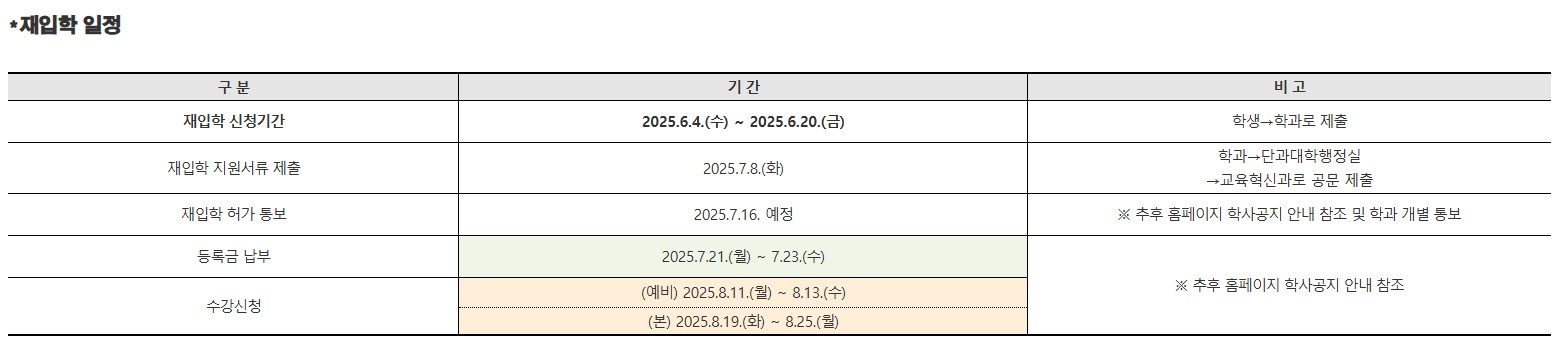 fnctId=bbs,fnctNo=793 2025학년도 2학기 재입학 추진 안내 작성일 2025.06.16 작성자 이경란 조회수 1642 첨부파일 화면 캡처 2025-06-16 130216.jpg 2025학년도 2학기 재입학 추진 안내(문).hwp 2025학년도 2학기 재입학 관련 양식.hwp
